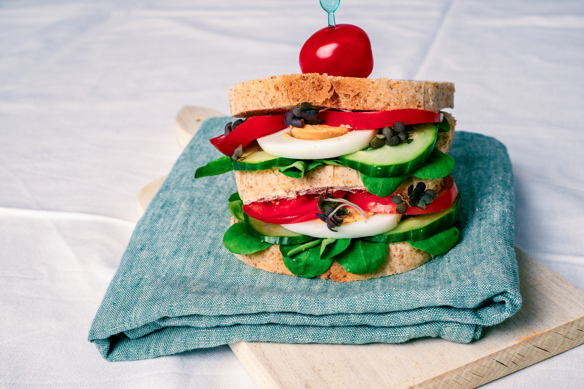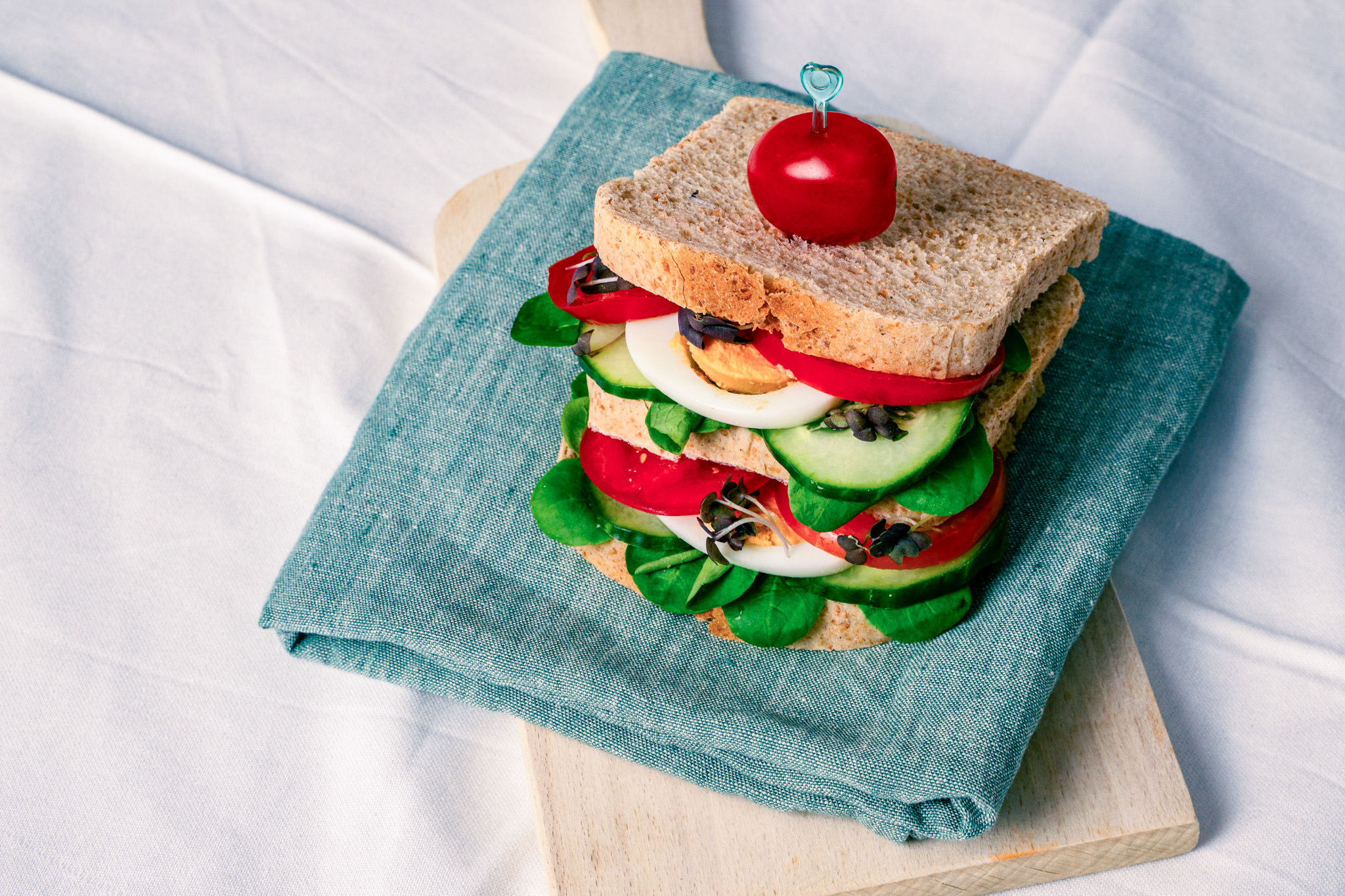 Schneiden Sie das Sandwich quer durch, so können Ihre Kundinnen und Kunden es leichter essen.