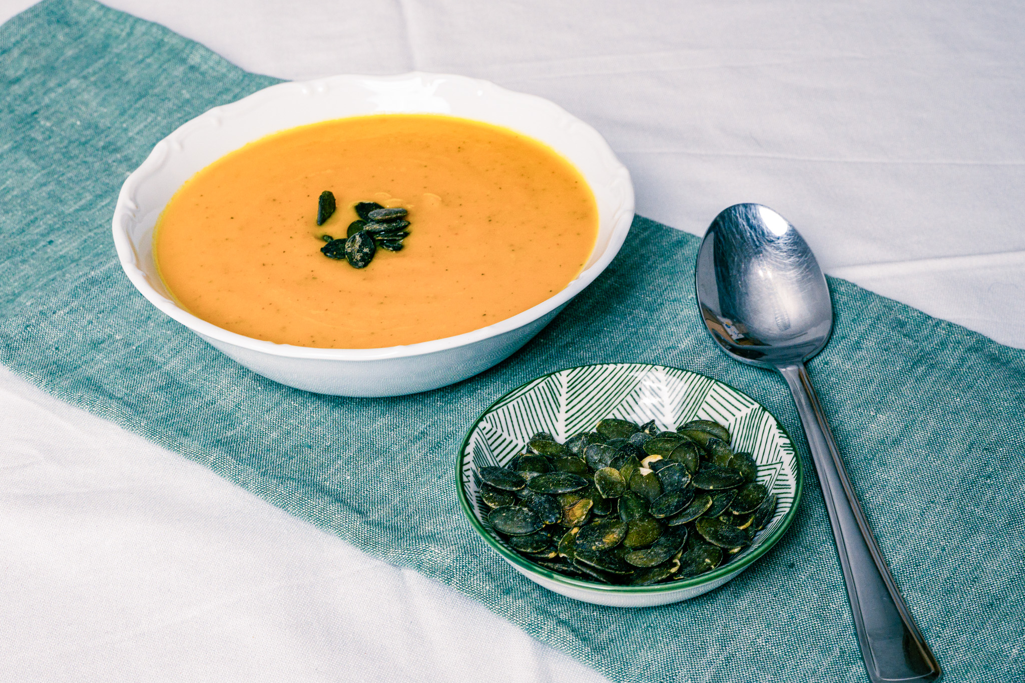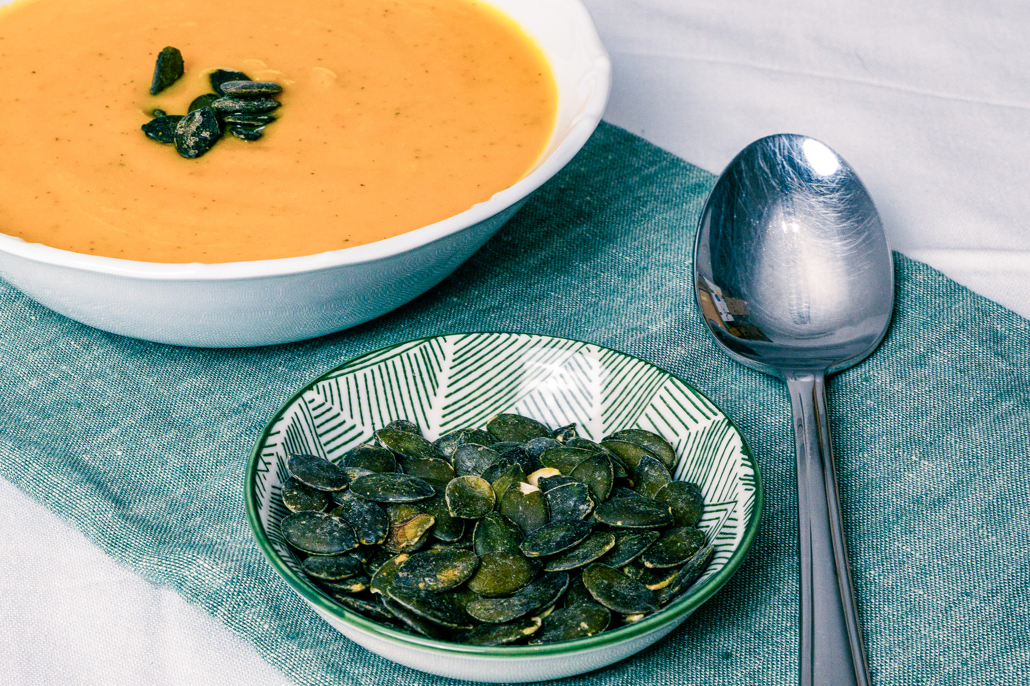Mit gehackten Kürbiskernen bestreuen (pro Portion 1 Teelöffel).