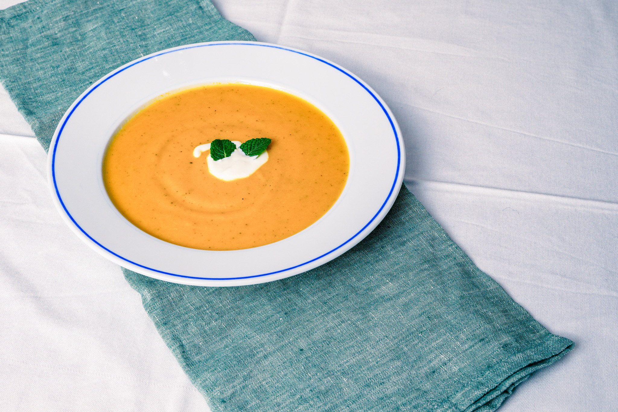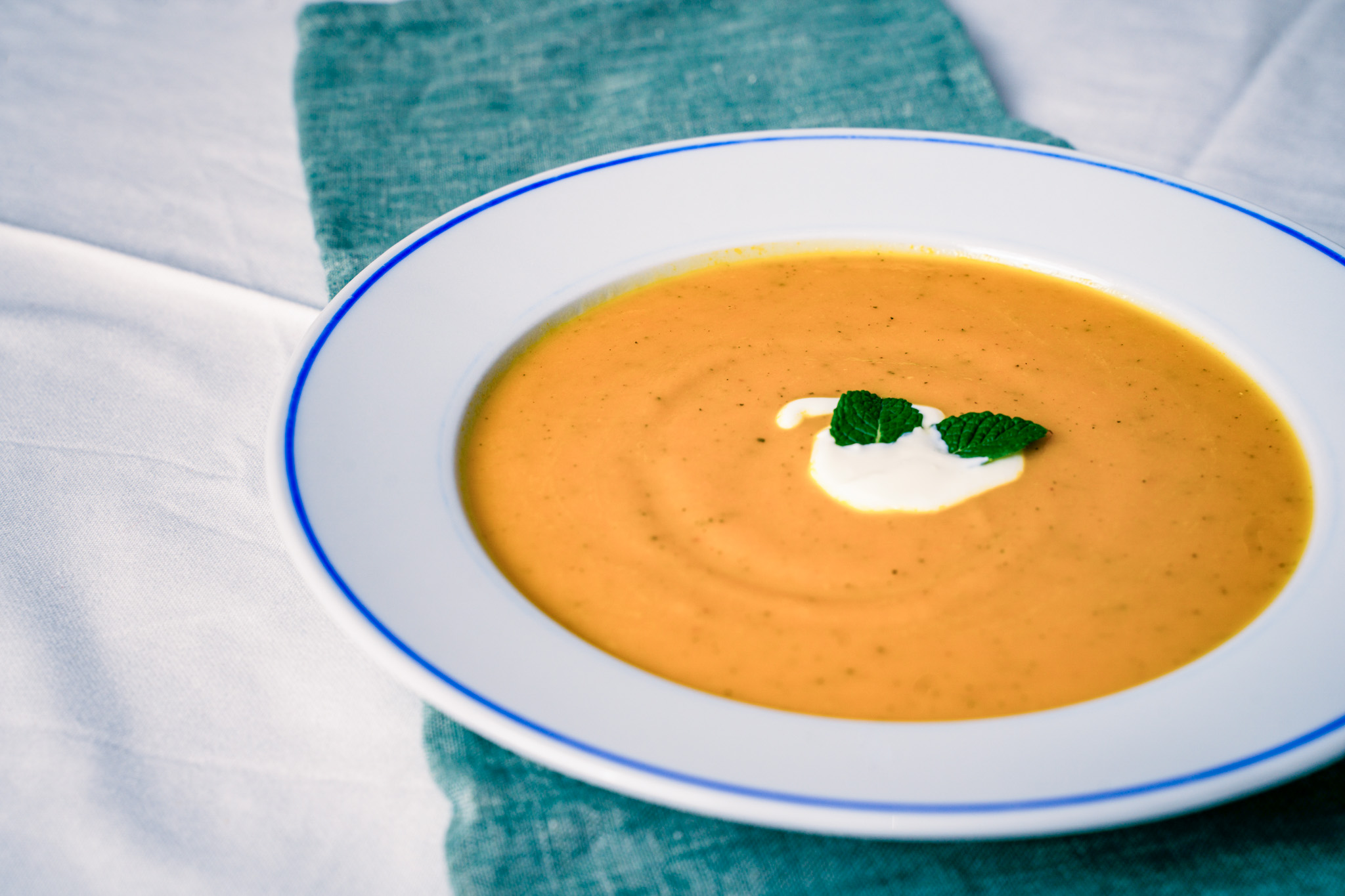 Mit je einem Teelöffel Naturjoghurt und etwas Minze garnieren.